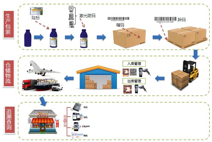 利用先進的激光賦碼技術、視覺采集技術、自動控制技術、互聯網技術和專業的工具,通過激光碼、TTO和噴碼等多種方式對單件產品賦予唯一身份碼,實現一物一碼,對產品的生產、倉儲、經銷及消費等環節進行數據采集跟蹤,實現產品全生命周期管理。