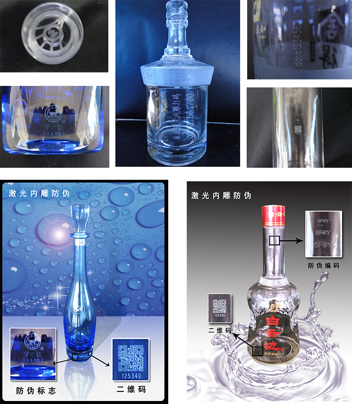 2、數字圖案內雕在瓶壁厚度中間、內雕部位瓶壁的內外表面平整光滑、無任何損傷痕跡。無法用高溫低溫酸堿溶劑或砂輪磨掉,去掉這種內雕標記就會造成瓶體破損!深層永久防偽!